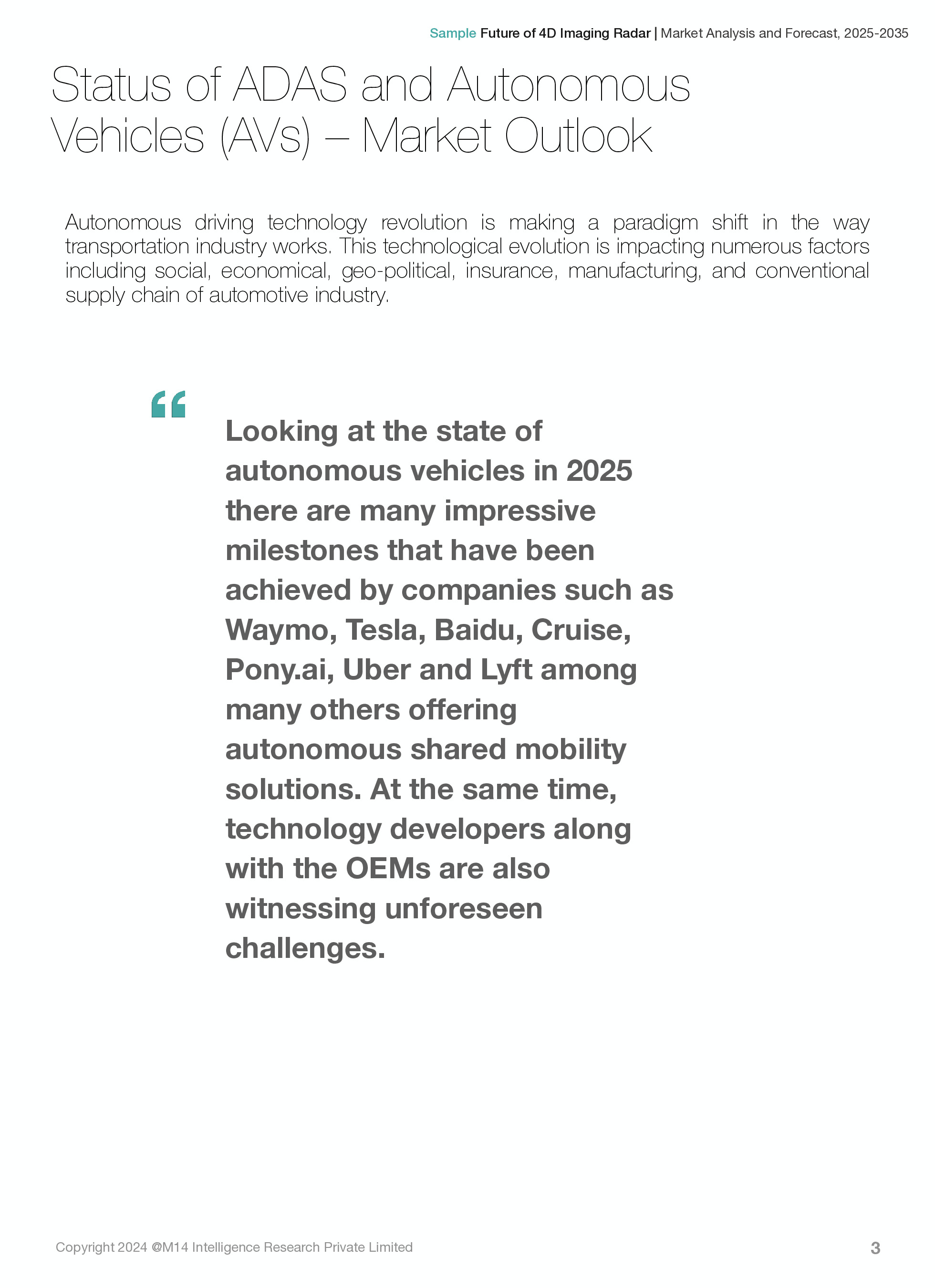 Autonomous vehicles launch timelines by OEMs & robotic vehicle companies (robotaxi, shuttles, pods, long-haul platooning trucks); market penetration &...
