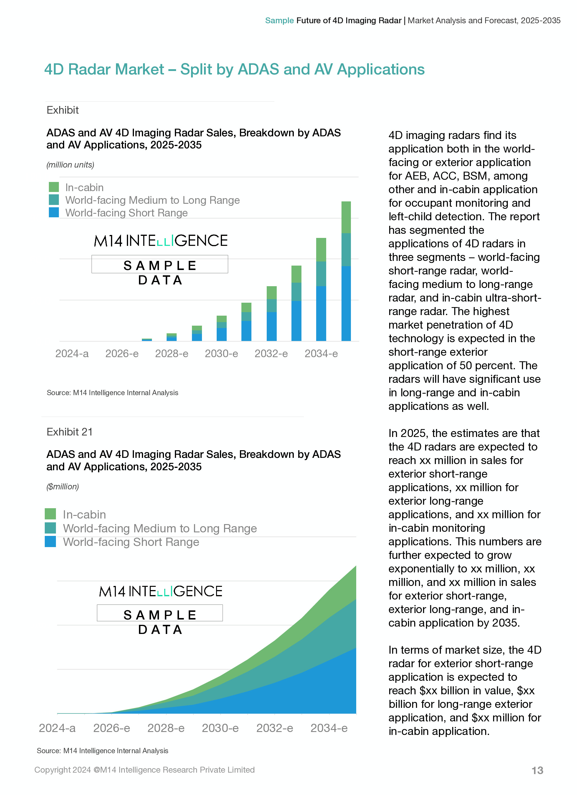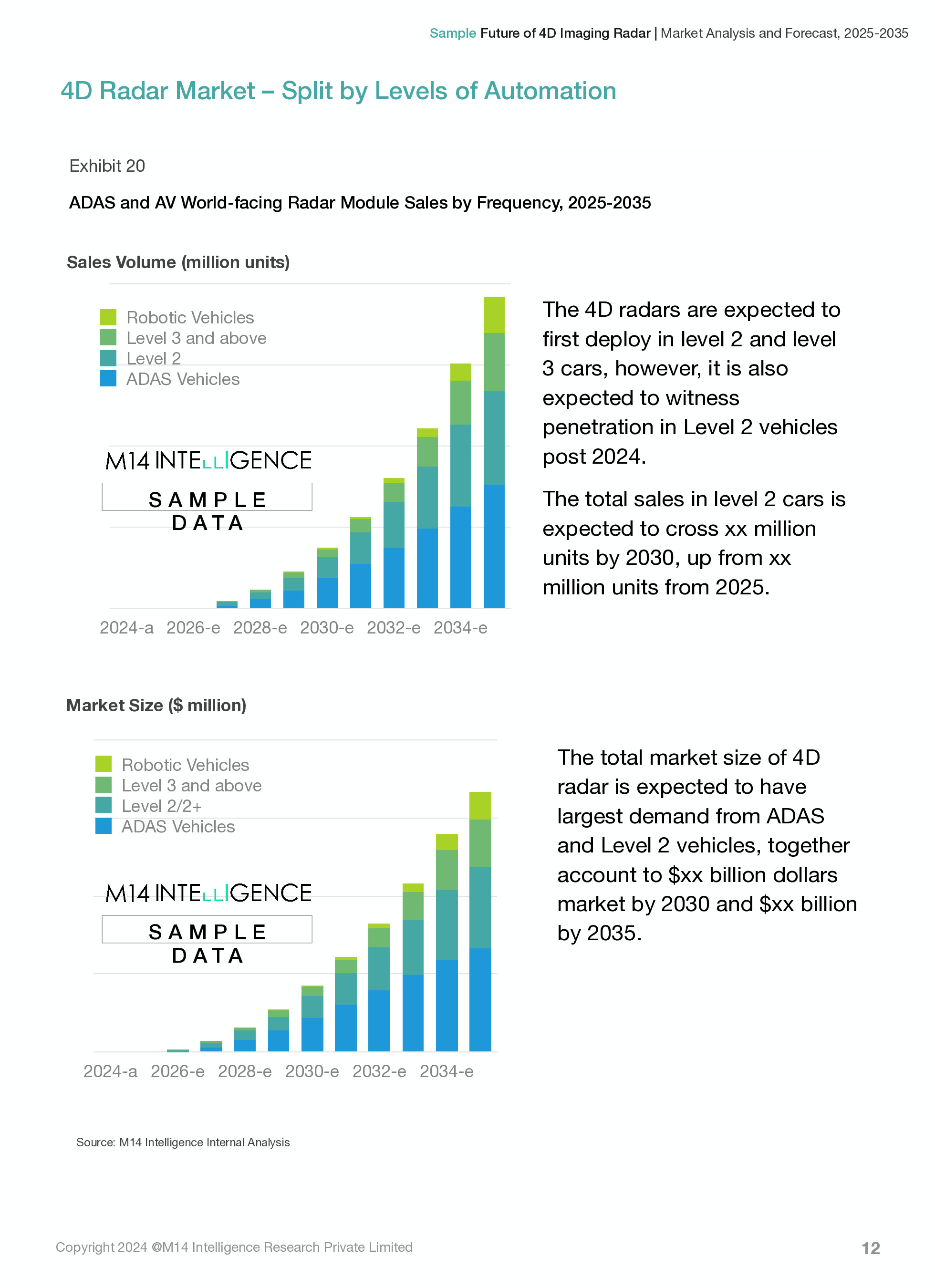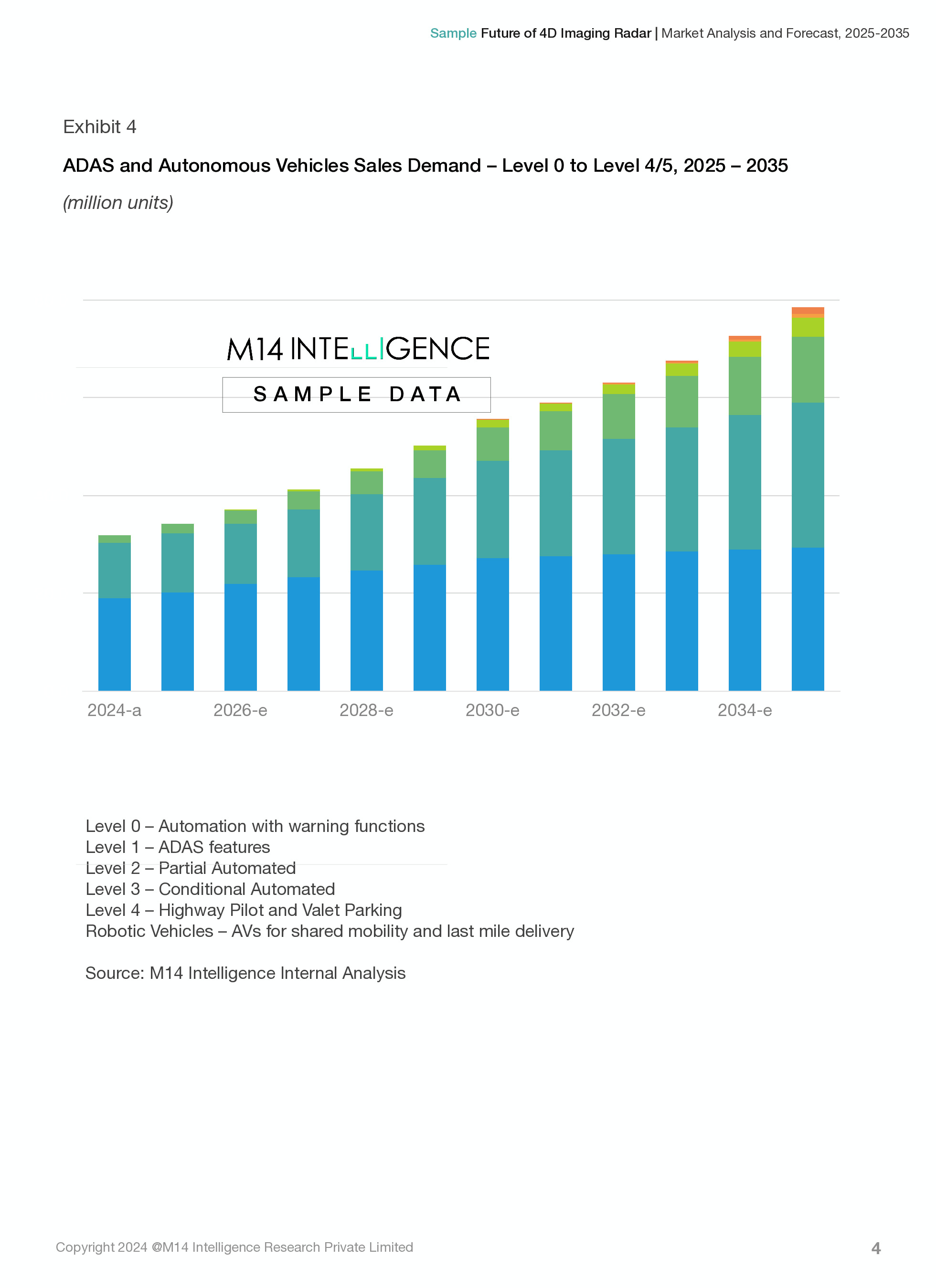 In-cabin and Exterior Sensing Applications of 4D imaging radar in ADAS and Autonomous Vehicles; 60 GHz, 76–81 GHz, and 140 GHz Band, SAE Level 2+ and above applications, Emerging 4D imaging players competition assessment
